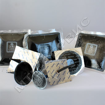 Виды грибков: без адгезивного слоя (для камерных шин), с адгезивом (для бескамерных шин) и с адгезивом и проволочной ножкой для удобства установки.